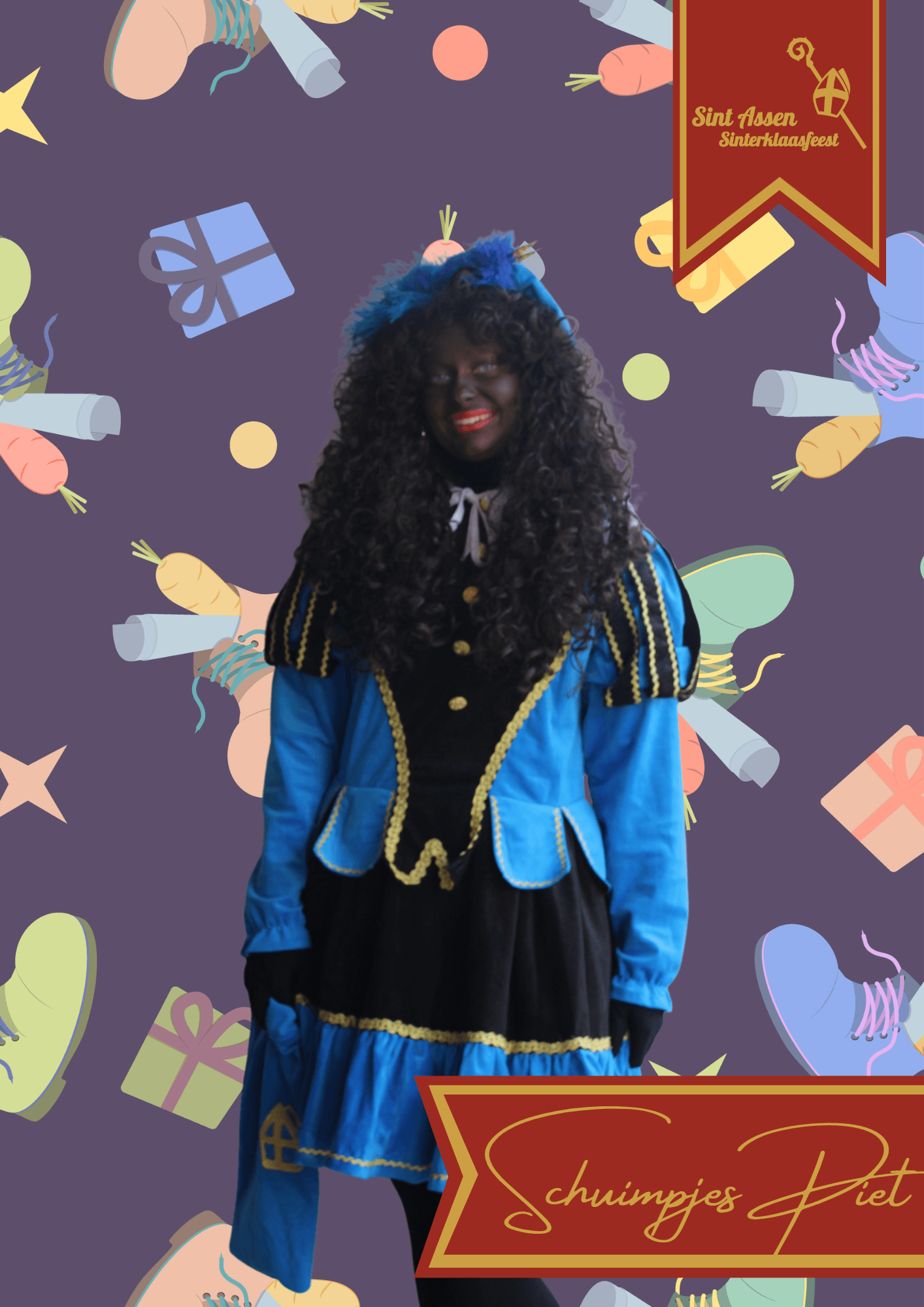 Hey hallo allemaal, mijn naam is Solana. Ik ben een hele energieke piet en mijn naam zegt het al: het zonneschijntje in het pietenhuis. Met mijn mooie jurk, lange haren en goede dansmoves, vallen alle jongenspieten als een blok voor me! Hihi!